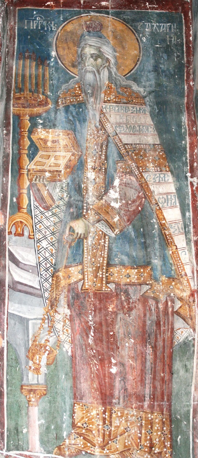 Ἀκηλίδωτον βίον διήνυσας, ὡς Προφήτης Θεοῦ ἐνθεώτατος, καὶ τοῦ Χριστοῦ τὴν σάρκωσιν, κατιδεῖν ἠξιώθης Ζαχαρία ἱεράρχα, καὶ Μάρτυς θεόληπτε.