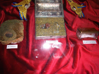 ![]() Ιερό λείψανο του Αγίου Μεγαλομάρτυρος Ιακώβου του Πέρσου, από τη συλλογή λειψάνων του Κέντρου Αγιολογικών Μελετών "Όσιος Συμεών ο Μεταφραστής". Αθήνα ![]() о в Богоявленский храм Александро-Невского Митрополита Барнаульского и Алтайского -мощевика с частицей Ризы Господней и частицами честных мощей 21-го святогоовой Святого великомученика Иакова Персиянина Λειψανοθήκη Σταυρός μέ αποτμήματα λειψάνων 21 αγίων όπως του Αγίου Μεγαλομάρτυρος Ιακώβου του Πέρσου, στον Ιερό Ναό τών Θεοφανείων Αλεξάνδρου Νιεβσκι Πατριαρχείο Μόσχας, Μητροπολη Αλτάι Barnaul Επισκοπή ![]() Moaştele Sfântului Iacob Persul de la Mănăstirea Dragomirna Dragomirna είναι ένα οχυρωμένο συγκρότημα μοναστήρι στη Ρουμανία , που χτίστηκε μεταξύ 1602-1609, στο χωριό Mitocu Dragomirnei του ομώνυμου πόλης (επί του παρόντος σε Suceava ) από τον Μητροπολίτη Αναστασίου Crimca της Μολδαβίας. Βρίσκεται κοντά στο δάσος Dragomirna σε απόσταση 12 χλμ βόρεια της Suceava . Η εκκλησία του μοναστηριού είναι αφιερωμένη Πεντηκοστής (Κυριακή γιόρτασε 50 ημέρες μετά το Πάσχα ). De peste trei veacuri, ctitoria mitropolitului Atanasie Crimca şi a domnitorului martir Miron Barnovschi de lângă Suceava – Mănăstirea Dragomirna – are drept odor de mare preţ o parte din moaştele Sfântului Iacob Persul. După decapitarea Sfântului Iacob, când regele persan Yezdegherd a aflat despre faptul că fraţii creştinii intenţionează să ia moaştele Sfântului, a dat ordin să fie arse şi dispersate. Însă, unii creştini au reuşit să le păstreze şi să le ducă la Ierusalim, unde au ajuns după 40 zile de mers pe jos şi le-au plasat în mănăstirea ibericilor (la Cetatea sau „Turnul lui David”) – înfiinţată de către Petru din Iberia, care era monofizit. Atunci când acesta, în urma sinodului de la Calcedon, a fost expulzat din Ierusalim, a dus cu el în Egipt şi moaştele Sfântului Iacob. După cum aflăm prin „Proloagele de la Ohrida” ale Sfântului Nicolae Velimirovici, cinstitul cap al Sfântului Iacov a fost dus la Roma, iar altă parte a sfintelor lui moaşte au ajuns în Portugalia, unde este prăznuit în douăzeci şi două de zile ale lunii mai. În 1697, o parte din moaştele Sfântului Iacob Persul au fost aduse la Mănăstirea Dragomirna, după cum menționează antimisul de mătase în care se păstrau. De atunci, Mănăstirea Dragomirna a trecut prin multe momente de încercare, dar, prin purtarea de grijă a Sfântului Mare Mucenic Iacob Persul şi prin rugăciunile sfinţilor ce au vieţuit aici, mănăstirea a dăinuit. Για πάνω από τρεις αιώνες, χτίστηκε από τον Μητροπολίτη Αθανάσιο Crimca και ο Πρίγκιπας Barnovschi επόμενο μάρτυρα Miron Suceava - Μονή Dragomirna - έχει την οσμή του μεγάλη τιμή κάποιο από τα λείψανα του Αγίου Ιακώβου του Πέρση. Μετά τον αποκεφαλισμό του Αγίου Ιακώβου, όταν ο Πέρσης βασιλιάς Yezdegherd έμαθε ότι οι αδελφοί προτίθενται να λάβουν τα λείψανα του Αγίου χριστιανών, διέταξε να καεί και διάσπαρτα. Αλλά μερικοί Χριστιανοί έχουν καταφέρει να διατηρήσουν και να τους οδηγήσει στην Ιερουσαλήμ, όπου έφτασαν μετά από 40 ημέρες με τα πόδια και τα τοποθέτησαν στα Ίβηρες μοναστήρι (Φρούριο ή «Πύργος του Δαβίδ») - που ιδρύθηκε από τον Πέτρο τον Iberia, η οποία ήταν μονοφυσίτες. Όταν μετά τη Σύνοδο της Χαλκηδόνας, εκδιώχθηκε από την Ιερουσαλήμ, πήγε μαζί του στην Αίγυπτο και τα λείψανα του Αγίου Ιακώβου. Όπως μαθαίνουμε στο "Πρόλογος από την Οχρίδα" του Αγίου Νικολάου Velimirovici, αξιότιμοι κεφάλι του Αγίου Ιακώβου ελήφθη στη Ρώμη και αλλού στον ιερό των λειψάνων έφθασε στην Πορτογαλία, όπου τιμάται είκοσι δύο ημέρες του Μαΐου . Το 1697, μερικά από τα λείψανα του Αγίου Ιακώβου του Πέρση έφερε στη Μονή Dragomirna, όπως αναφέρεται Antimins μετάξι διατηρείται. Από τότε, το μοναστήρι Dragomirna πέρασε πολλές φορές τον έλεγχο, αλλά από την φροντίδα του Μεγαλομάρτυρος Αγίου Ιακώβου του Πέρση και τις προσευχές των αγίων που έζησαν εδώ, η μονή επέζησε. ![]() Manastirea Sfantului Mare Mucenic Iacov Persul Sfintii ale caror moaste se afla aici sunt Sfintii: Nicolae al Mirelor Lichiei, Iacov Persul Απότμημα Ιερού λειψάνου τού Αγίου Ιακώβου τού Πέρσου στην Ιερά Μονή Αγίου Ιακώβου τού Πέρσου. Ρο
