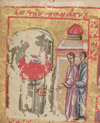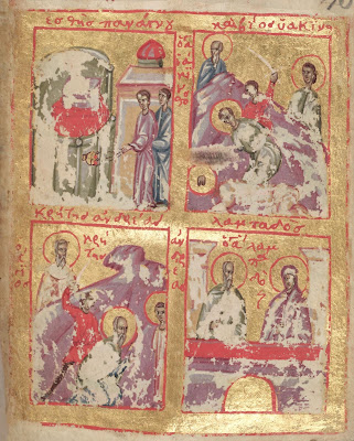 Менологий 2 - 5 июля Византия. Греция; XIV в.; памятник: Византийский менологий (Byzantine illumination Menologion); 10 x 13 см.; местонахождение: Англия. Оксфорд. Бодлеанская Библиотека (Bodleian Library) Κατάθεσις της Τιμίας Εσθήτος της Θεοτόκου Μηνολόγιο 2 - 5, Ιουλίου. Βυζαντινή Μηνολόγιο τού 14ου αιώνα μ.Χ. Τώρα ευρίσκεται στην Αγγλία. Οξφόρδη. Bodleian Βιβλιοθήκη (Bodleian Library)